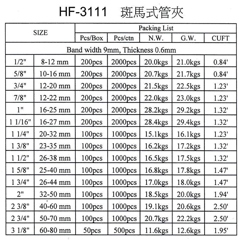 of Hose Clamp, Clip, Eclro Clamp, American Clamp, Zebra type Clamp,Heavy duty Clamp in different models and sizes.